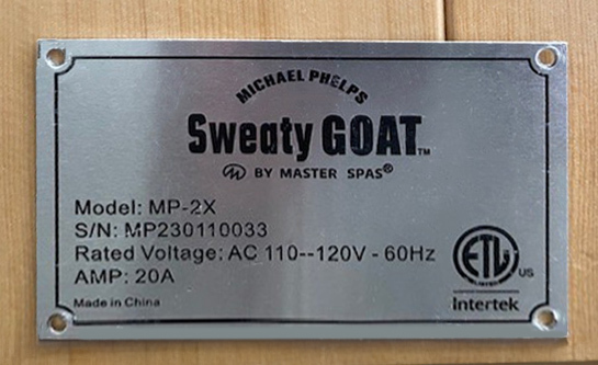 For saunas, your Serial Number can found on the model listing plate mounted on the back, lower corner of the sauna.